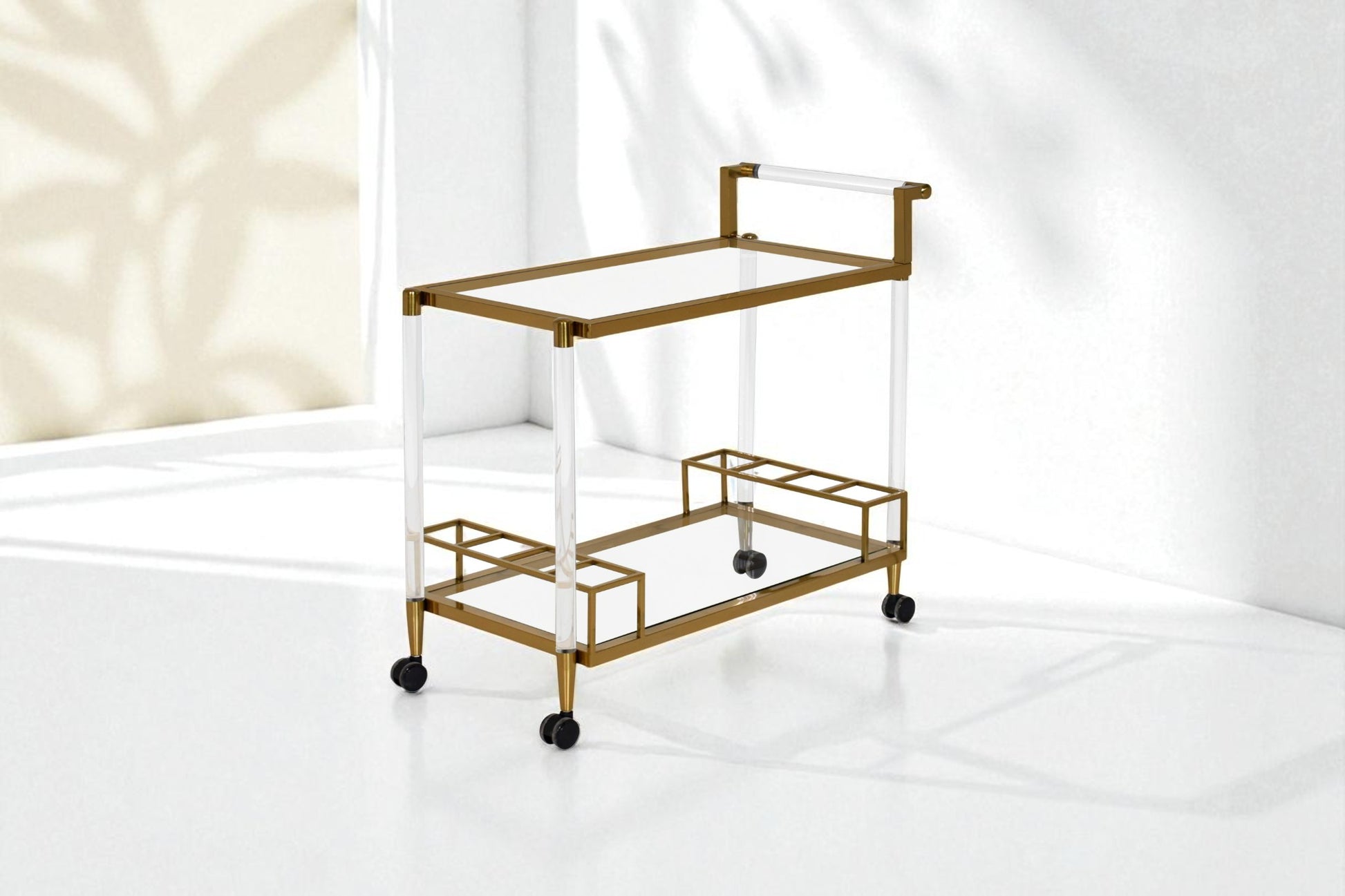 The metallic frame combined with either wood or glass shelves gives the trolley a refined, modern design that enhances any space.